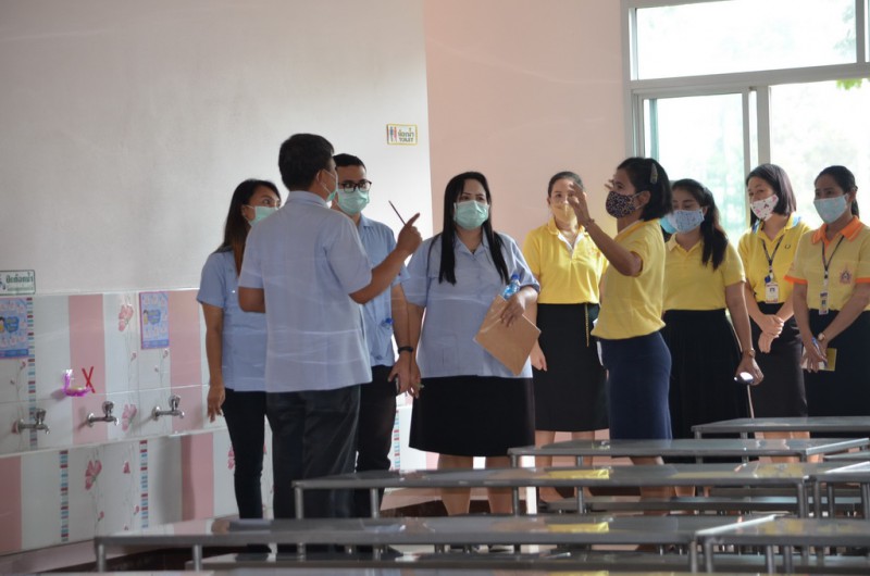 รับตรวจประเมินความพร้อมและสร้างมาตราฐานการรับมือสถานการณ์ COVID-19 ในการเปิดภาคเรียนการศึกษา โดยเจ้าหน้าที่สาธารณสุข โรงพยาบาลส่งเสริมสุขภาพตำบลบ่อวิน